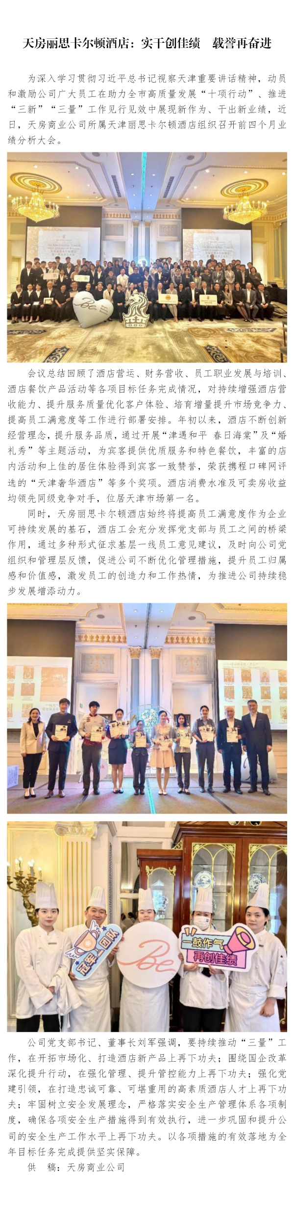 天房麗思卡爾頓酒店:實干創(chuàng)佳績 載譽再奮進