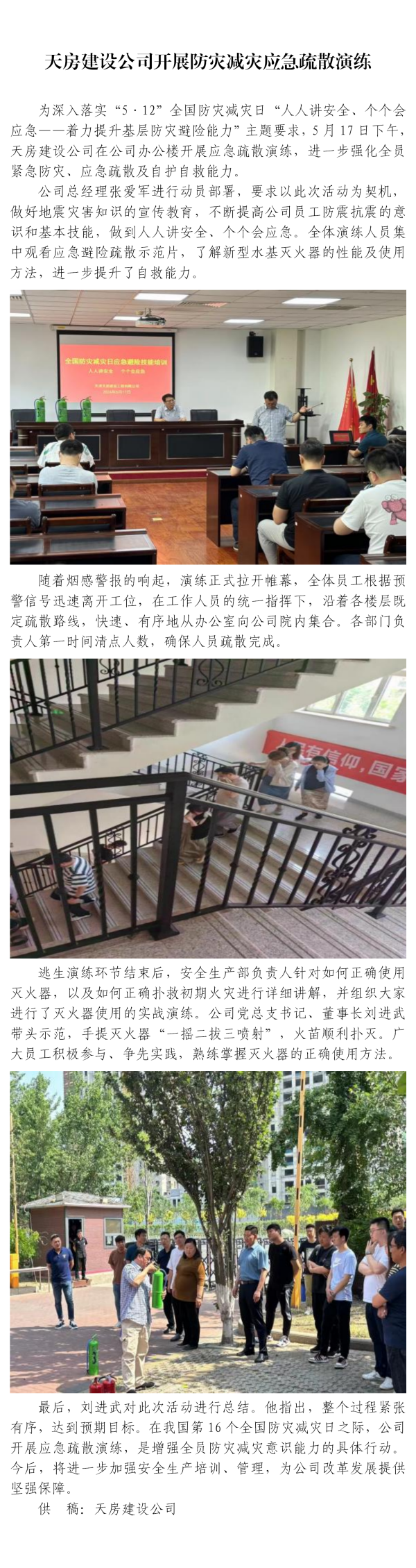 天房建設(shè)公司開展防災(zāi)減災(zāi)應(yīng)急疏散演練