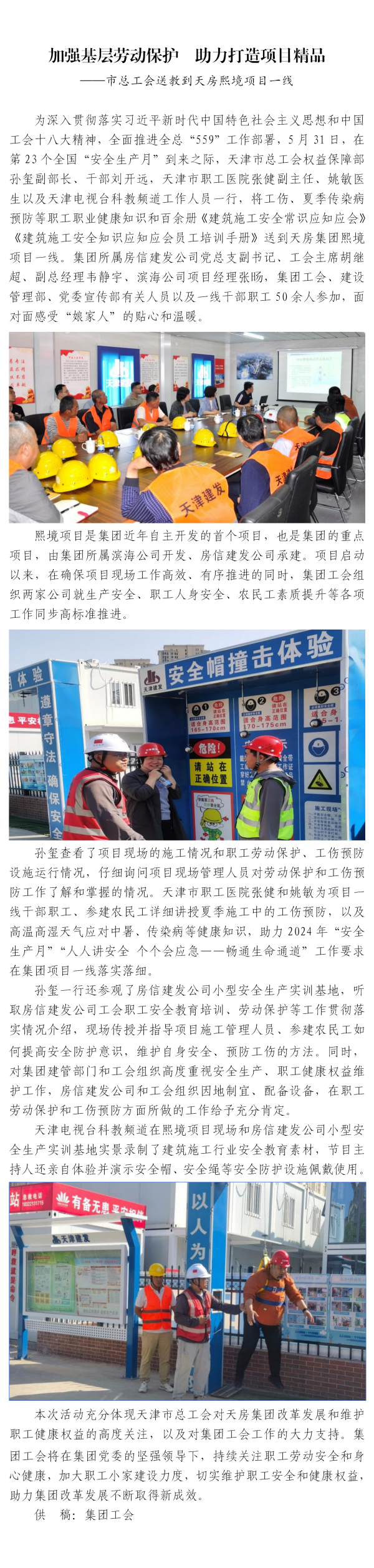 加強基層勞動保護 助力打造項目精品 ——市總工會送教到天房熙境項目一線