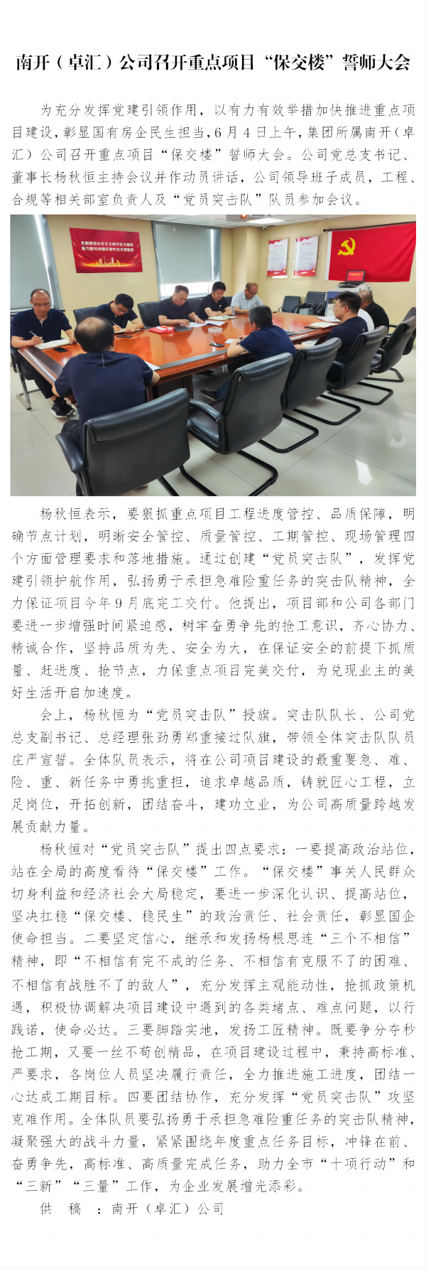南開(卓匯)公司召開重點(diǎn)項(xiàng)目“保交樓”誓師大會(huì)