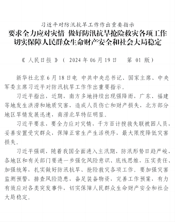 習(xí)近平對(duì)防汛抗旱工作作出重要指示