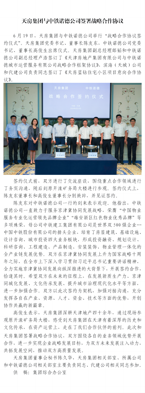 天房集團(tuán)與中鐵諾德公司簽署戰(zhàn)略合作協(xié)議