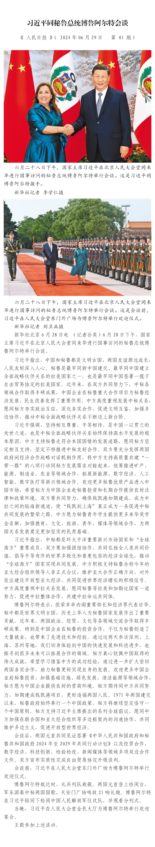 習(xí)近平同秘魯總統(tǒng)博魯阿爾特會(huì)談