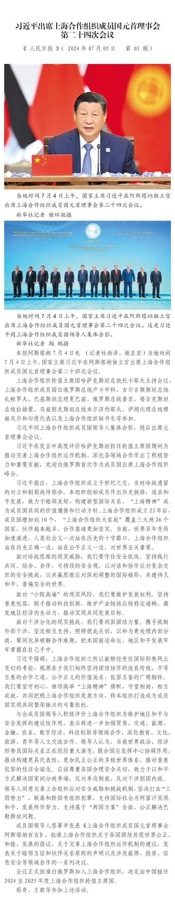 習(xí)近平出席上海合作組織成員國(guó)元首理事會(huì) 第二十四次會(huì)議