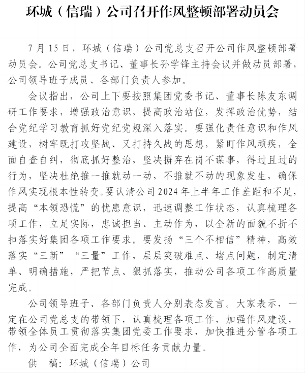 環(huán)城(信瑞)公司召開(kāi)作風(fēng)整頓部署動(dòng)員會(huì)