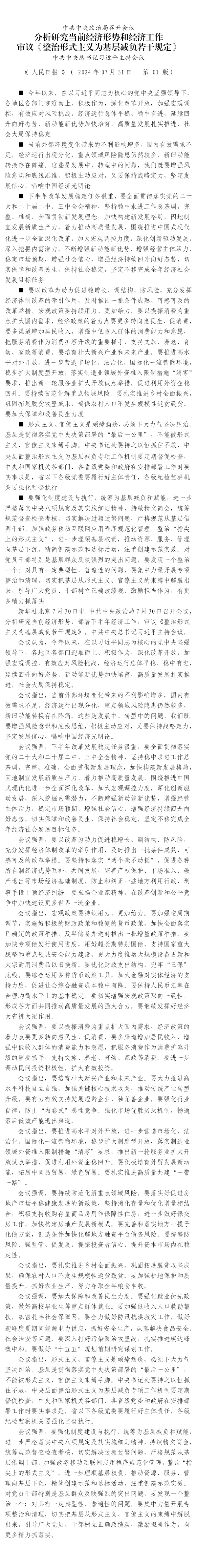 中共中央政治局召開(kāi)會(huì)議 分析研究當(dāng)前經(jīng)濟(jì)形勢(shì)和經(jīng)濟(jì)工作 審議《整治形式主義為基層減負(fù)若干規(guī)定》 中共中央總書(shū)記習(xí)近平主持會(huì)議