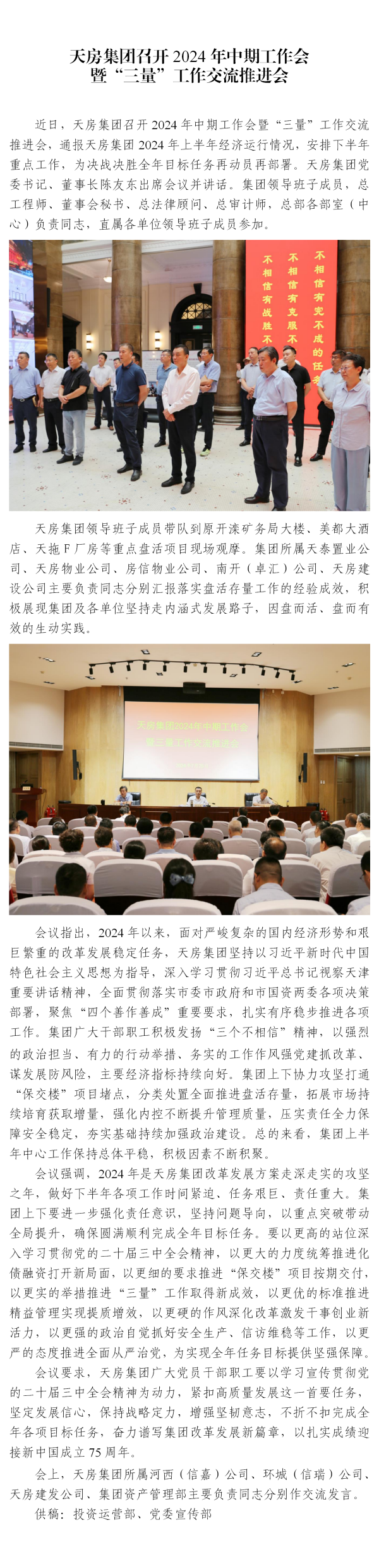 天房集團(tuán)召開2024年中期工作會(huì)暨“三量”工作交流推進(jìn)會(huì)