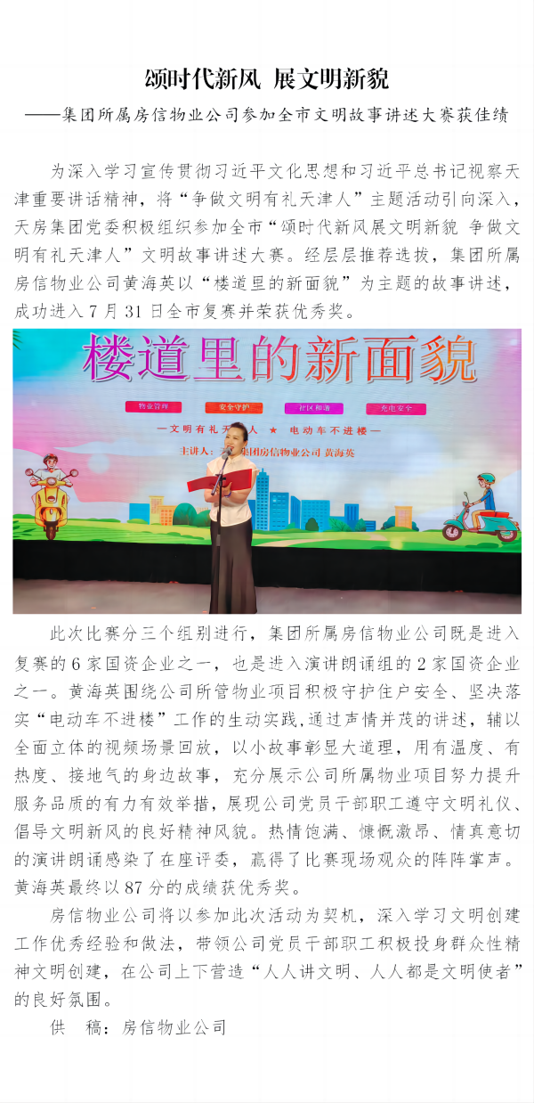 頌時(shí)代新風(fēng) 展文明新貌 ——集團(tuán)所屬房信物業(yè)公司參加全市文明故事講述大賽獲佳績