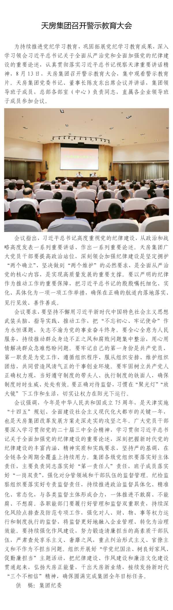 天房集團召開警示教育大會