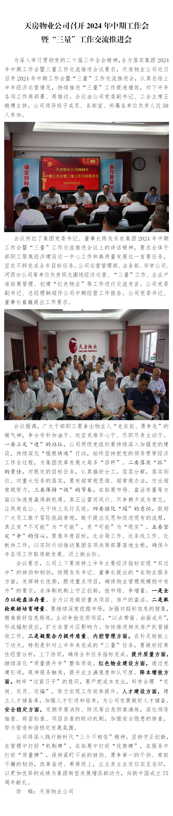 天房物業(yè)公司召開2024年中期工作會 暨“三量”工作交流推進會