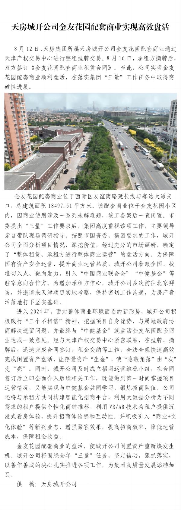 天房城開公司金友花園配套商業(yè)實現(xiàn)高效盤活