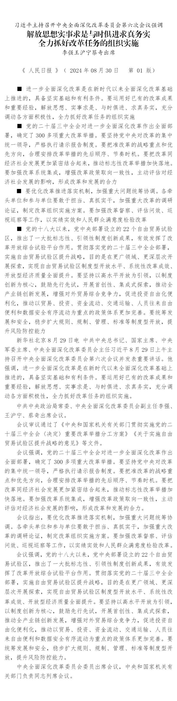 習近平主持召開中央全面深化改革委員會第六次會議強調(diào)
