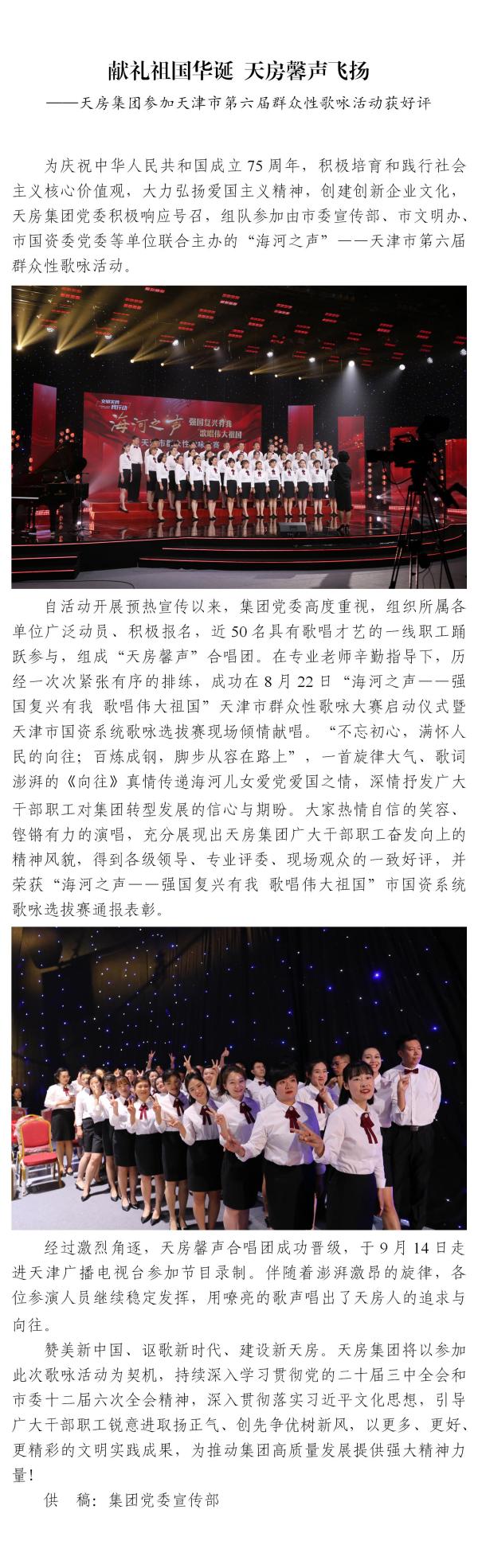 獻(xiàn)禮祖國華誕 天房馨聲飛揚(yáng) ——天房集團(tuán)參加天津市第六屆群眾性歌詠活動獲好評