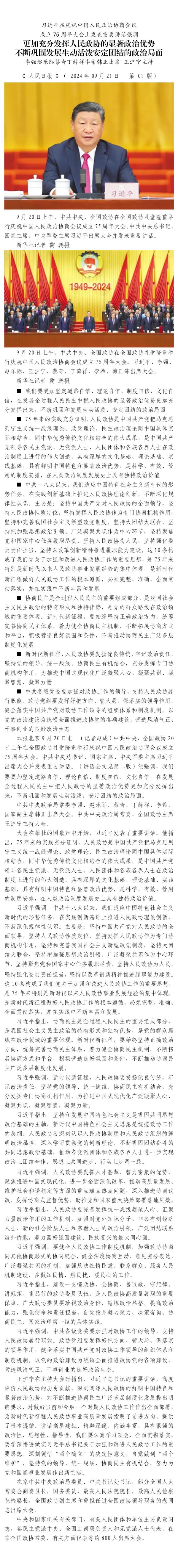 習(xí)近平在慶祝中國人民政治協(xié)商會(huì)議成立75周年大會(huì)上發(fā)表重要講話強(qiáng)調(diào)