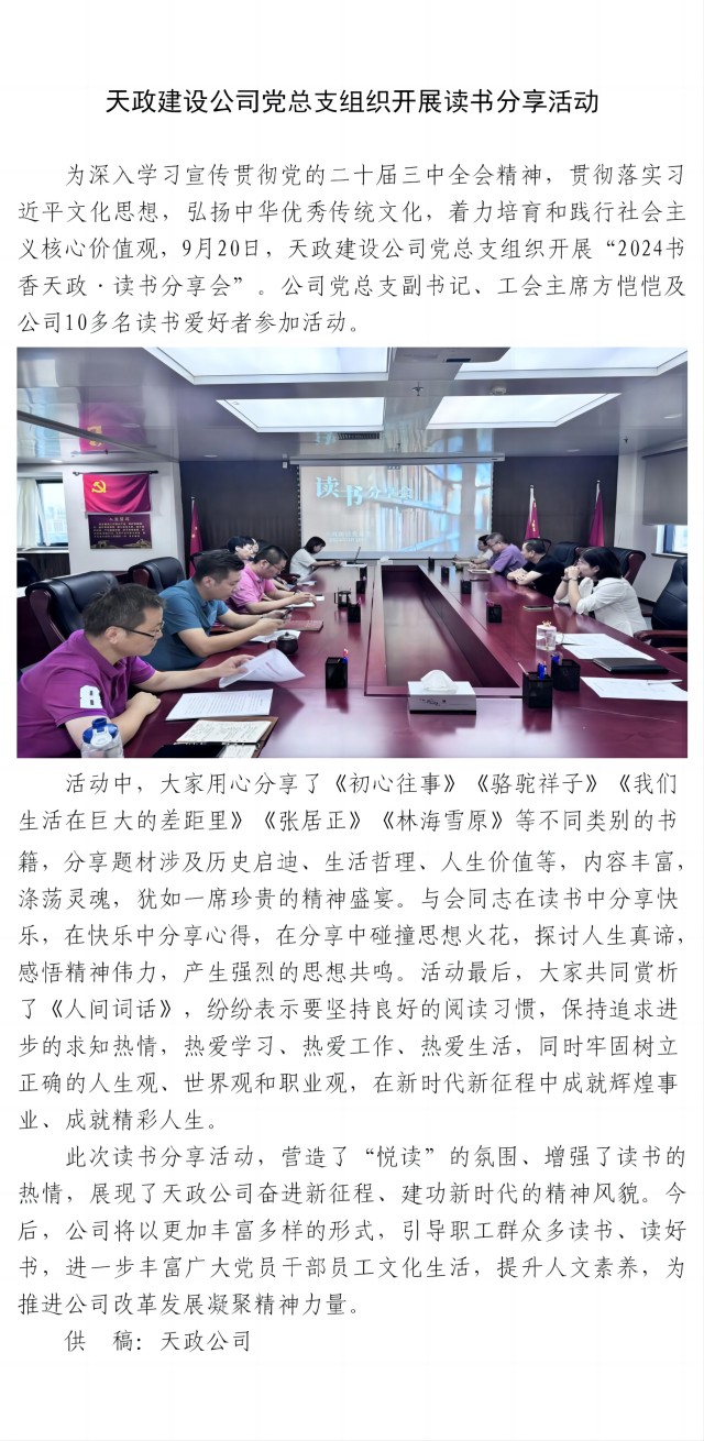 天政建設(shè)公司黨總支組織開展讀書分享活動(dòng)