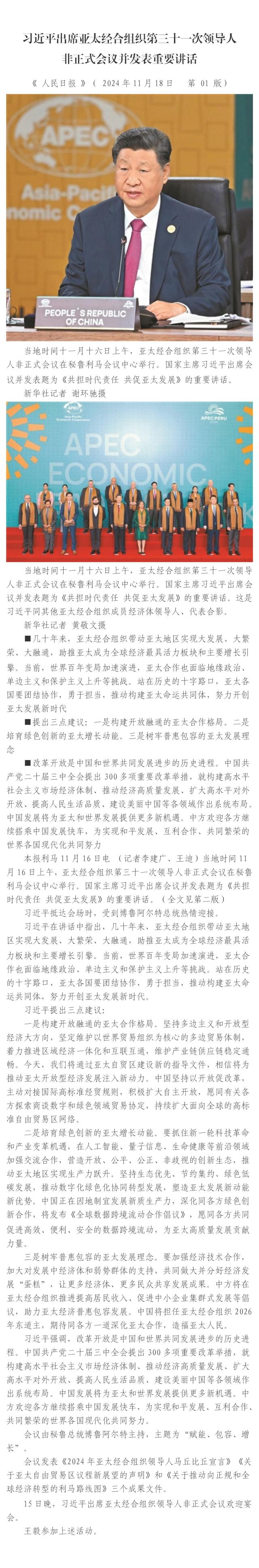 習(xí)近平出席亞太經(jīng)合組織第三十一次領(lǐng)導(dǎo)人非正式會議并發(fā)表重要講話