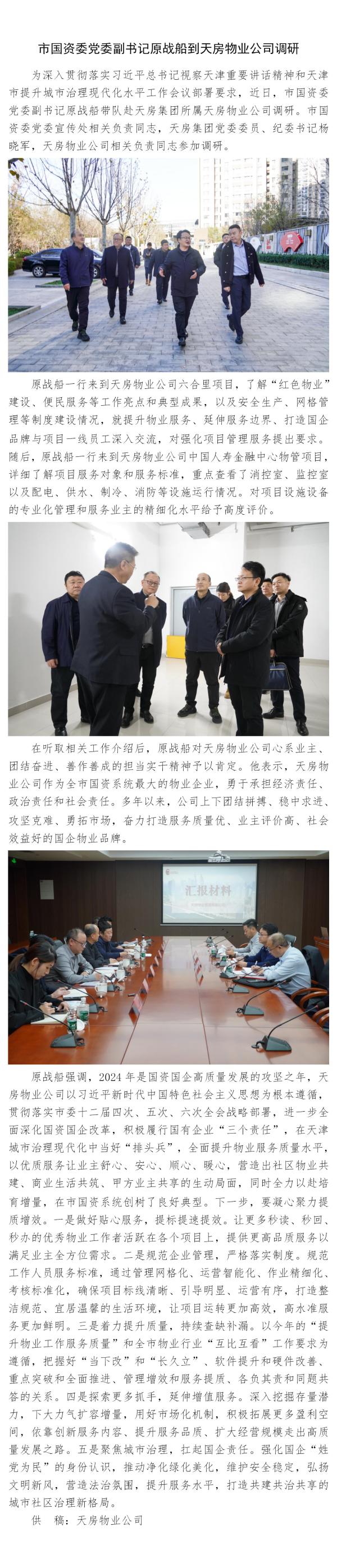 市國資委黨委副書記原戰(zhàn)船到天房物業(yè)公司調(diào)研