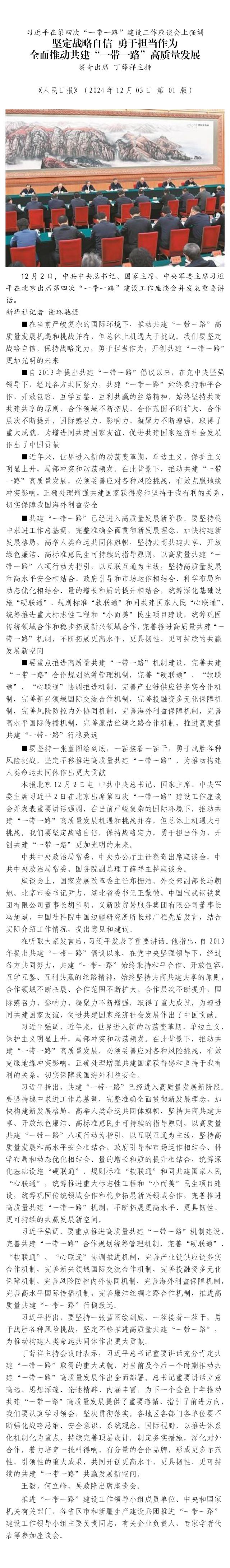 習近平在第四次“一帶一路”建設工作座談會上強調