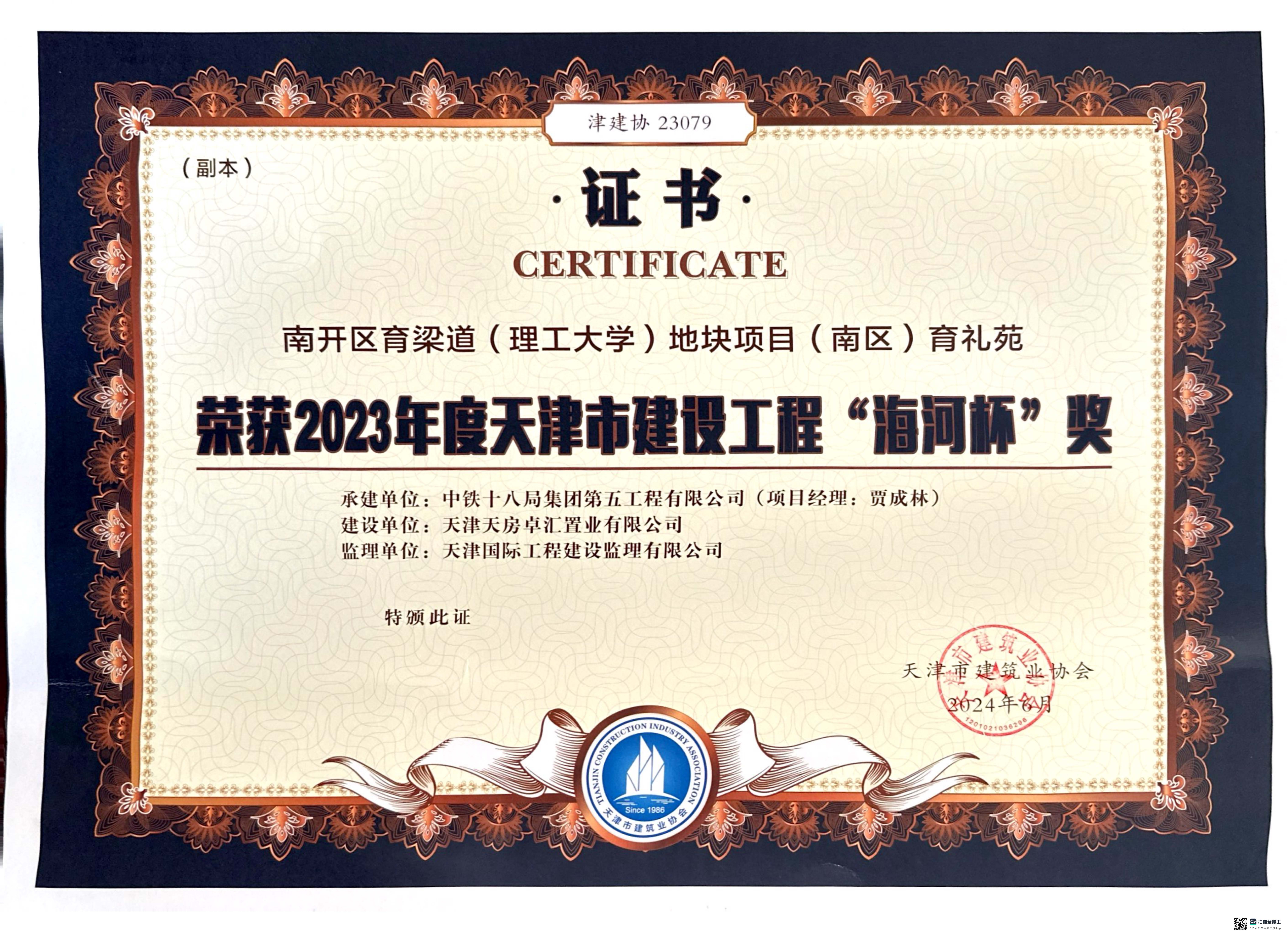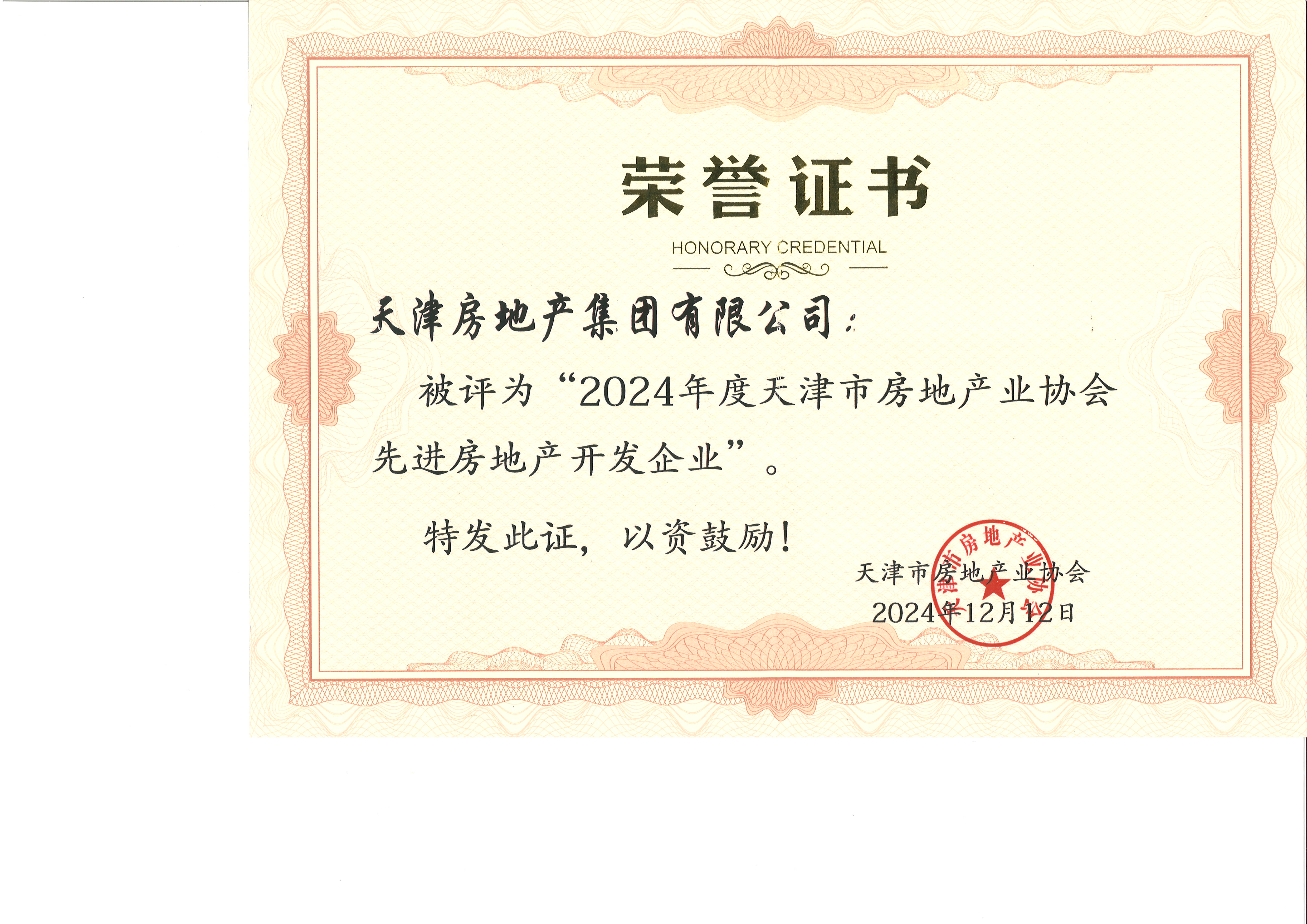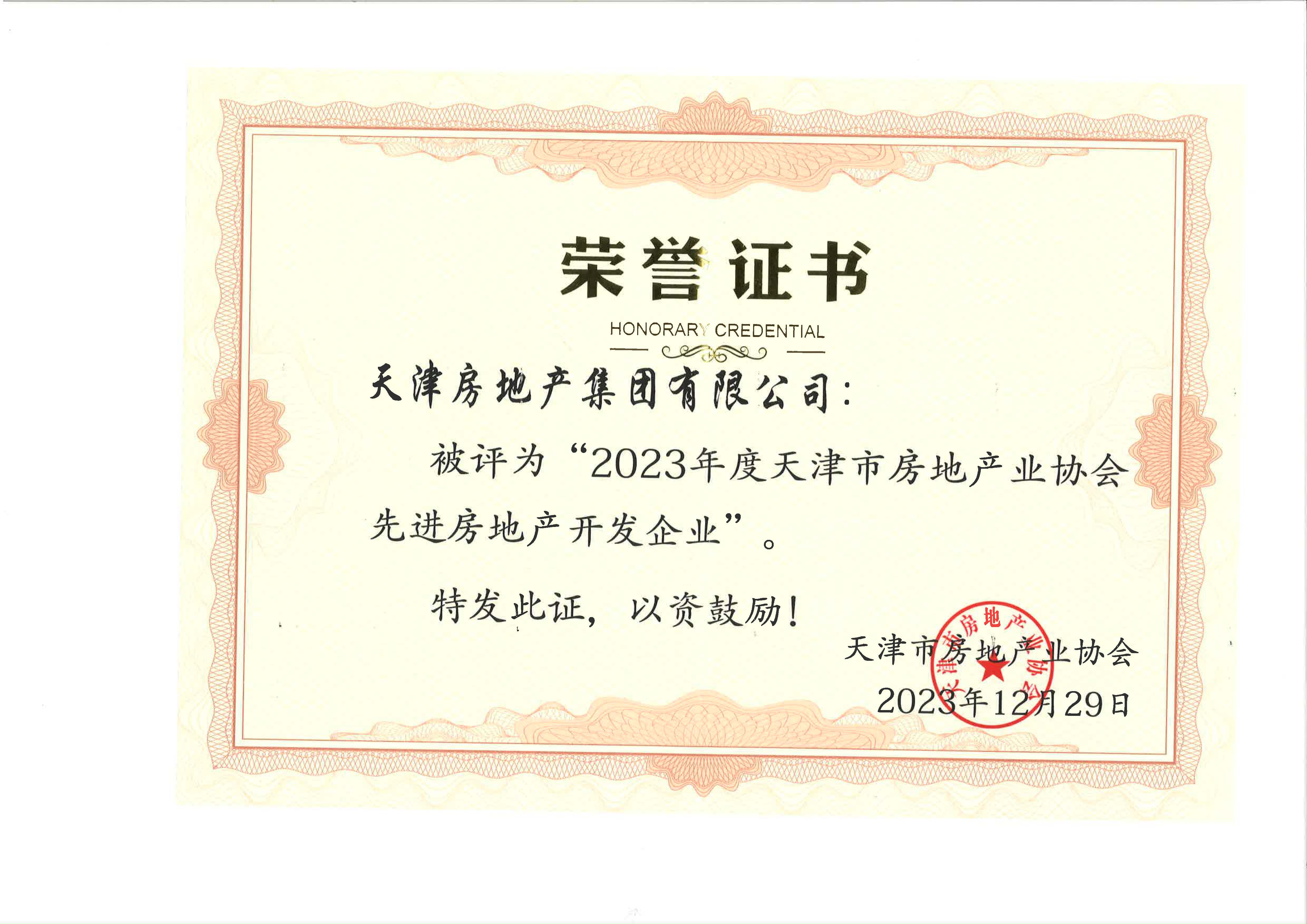 2024年度天津市房地產(chǎn)業(yè)協(xié)會先進房地產(chǎn)開發(fā)企業(yè)